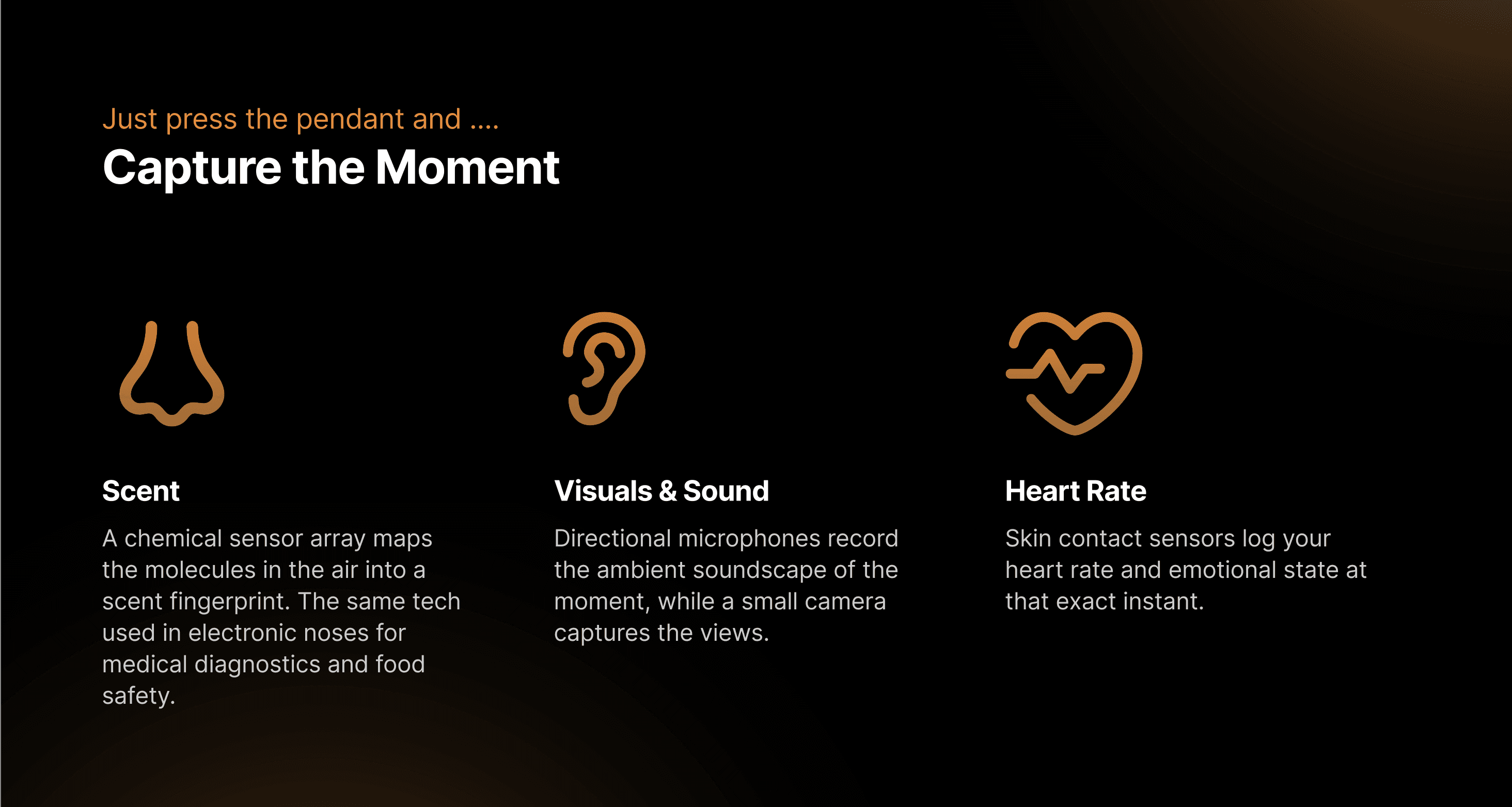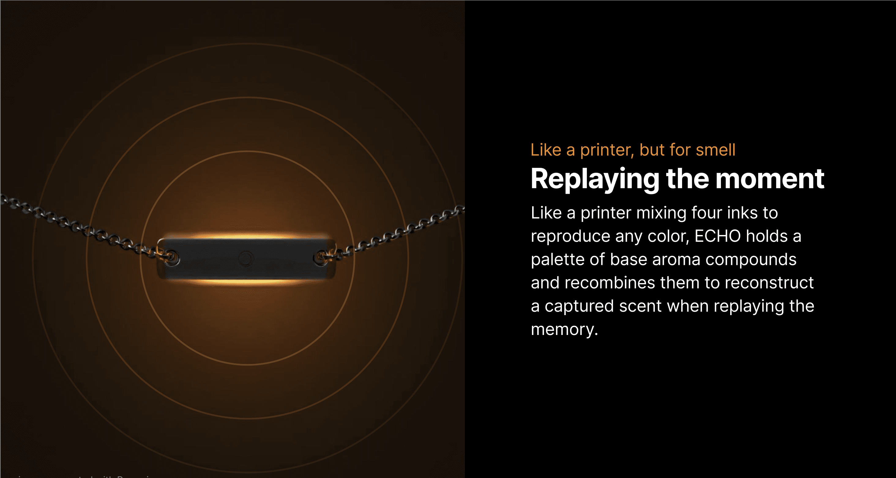 ECHO is a wearable pendant that captures how a moment smells, sounds, and looks so you can relive it exactly as it felt, whenever you need to. This project was completed solo as part of a design-a-thon, a personal challenge to see how far I could push my skills working independently as a designer.