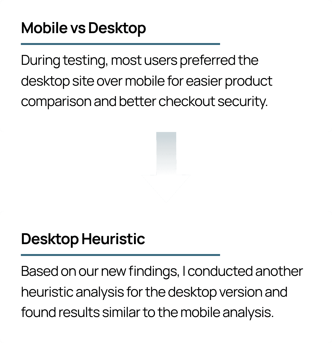 Based on insights from our comparative analysis, talk-aloud walkthroughs, heuristic evaluation, and usability testing, we developed recommendations tailored to the company’s business needs and available resources.